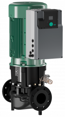 Pompe simple à moteur ventilé et variation électronique de construction Inline avec raccord à bride et adaptation automatique de la puissance